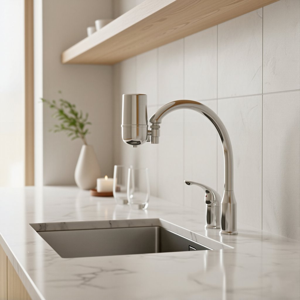 Med dette filter kan du nemt få en effektiv vandrensning med et filter, der er monteret direkte på vandhanen.